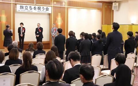 北九州の児童養護施設を今春卒園する高校3年生を励ます「旅立ちを祝う会」が2月、北九州市のホテルで開かれました=写真=。